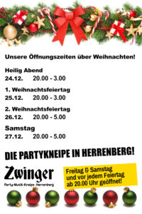 Öffnungszeiten über Weihnachten